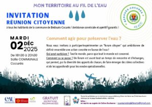 Réunion citoyenne organisée dans le cadre du programme « Mon territoire au fil de l’eau » financé par l’Agence de l’eau Adour-Garonne, la Région Occitanie et le Département de la Lozère.
